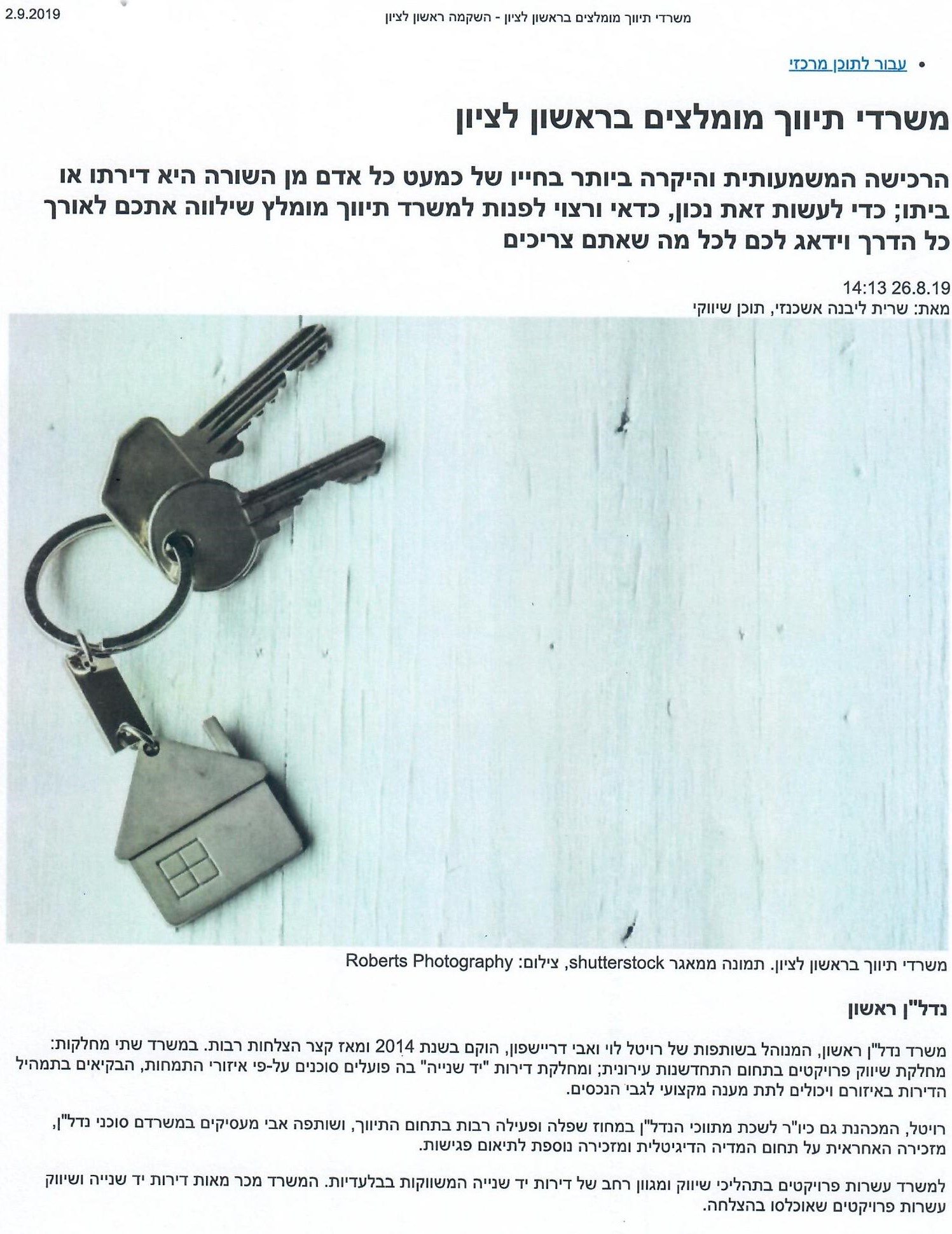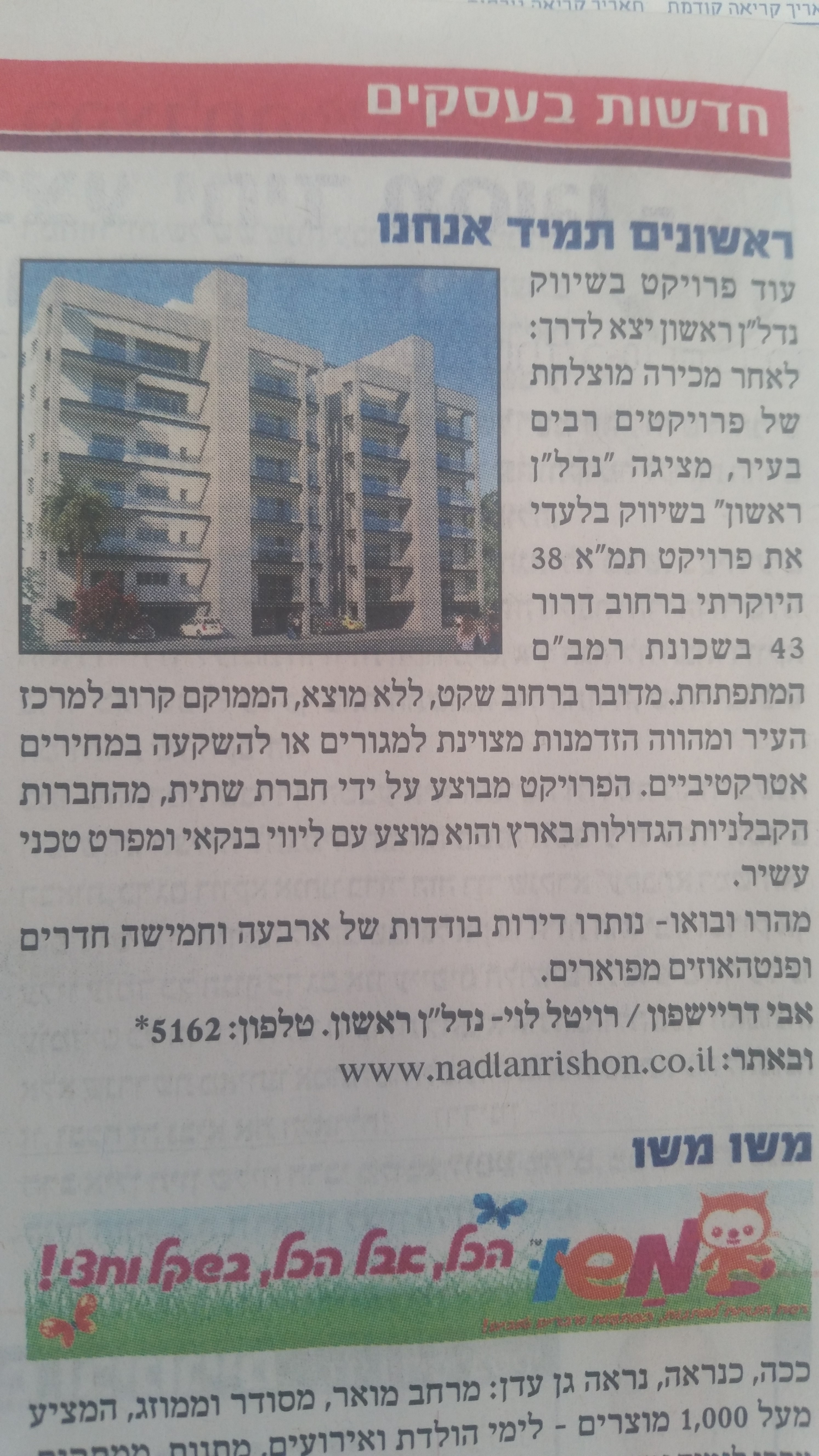 אנחנו בנדל"ן ראשון מתגאים בכתבות שנכתבו עלינו בעיתונים השונים.